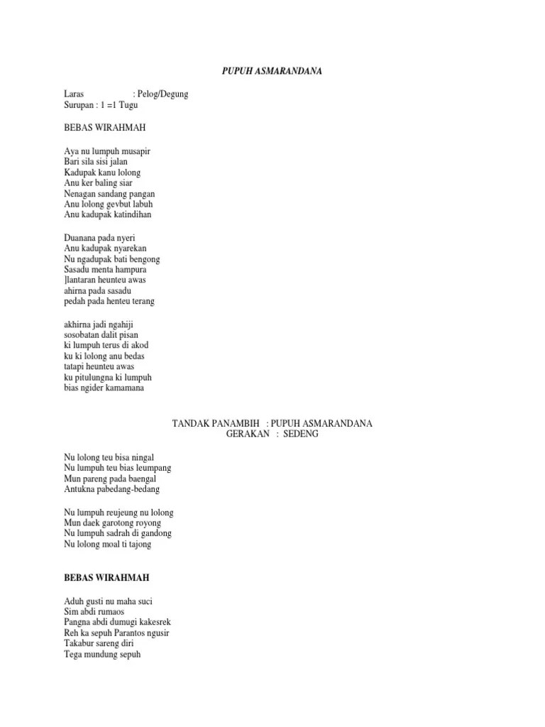 Lirik pupuh asmarandana pengemis jeung nu lolong pupuh sunda, sekar ageung. Kumpulan lirik pupuh maskumambang lagu sunda published blog : Kinanti, asmarandana, sinom, dan dangdanggula, selebihnya termasuk . Download lagu gratis, gudang lagu mp3 indonesia. "pupuh yang terkenal sebanyak 17 macam, 4 macam pupuh ageung meliputi,.